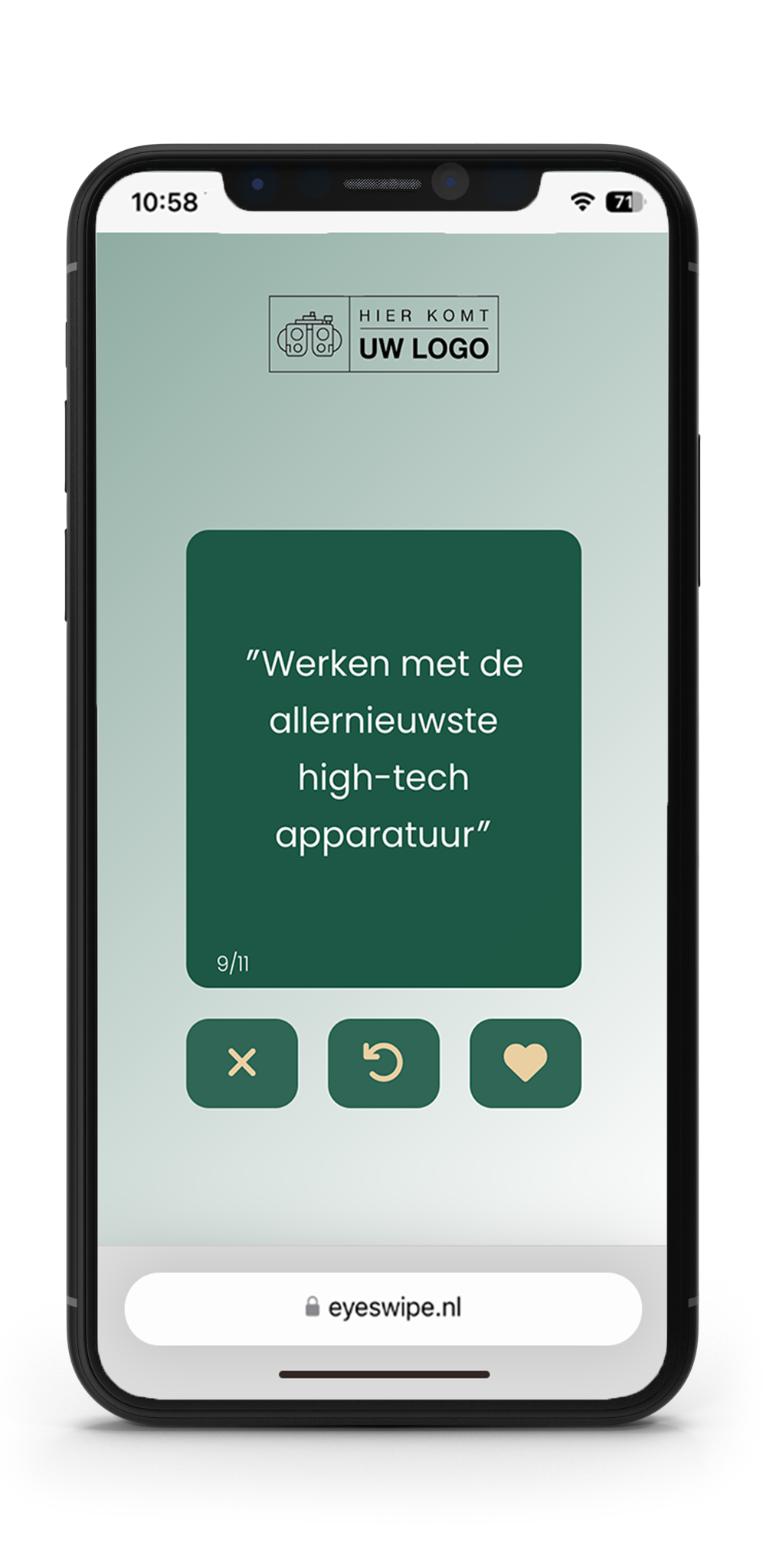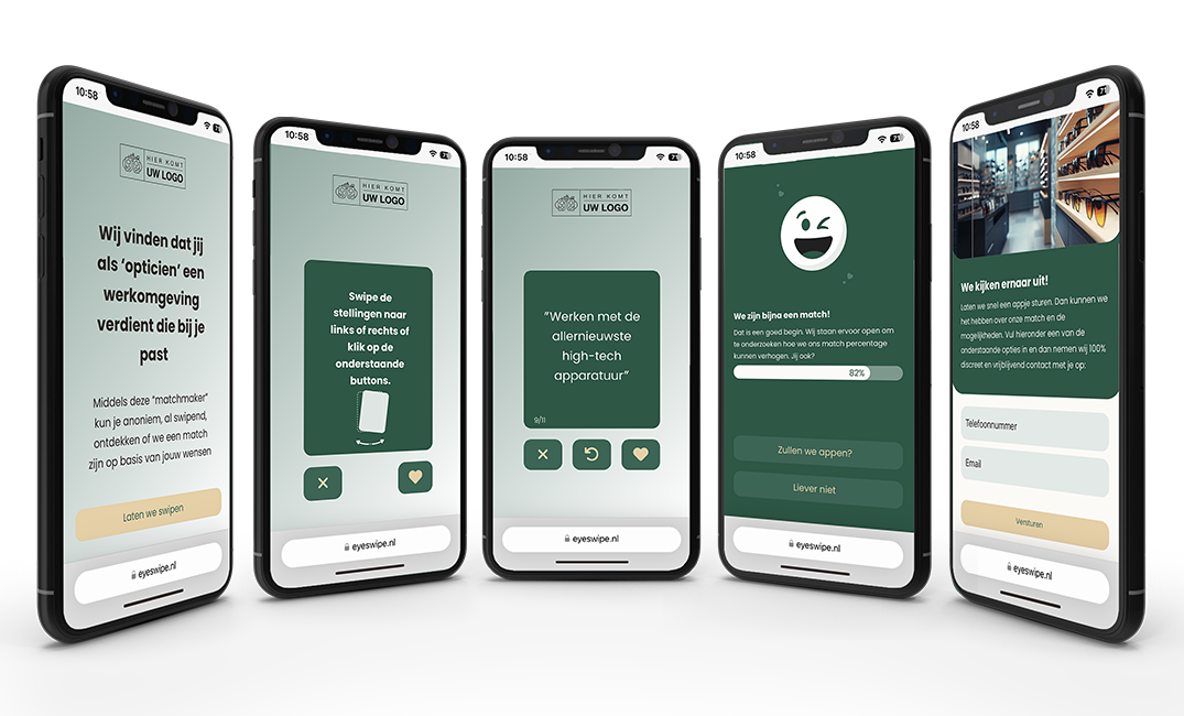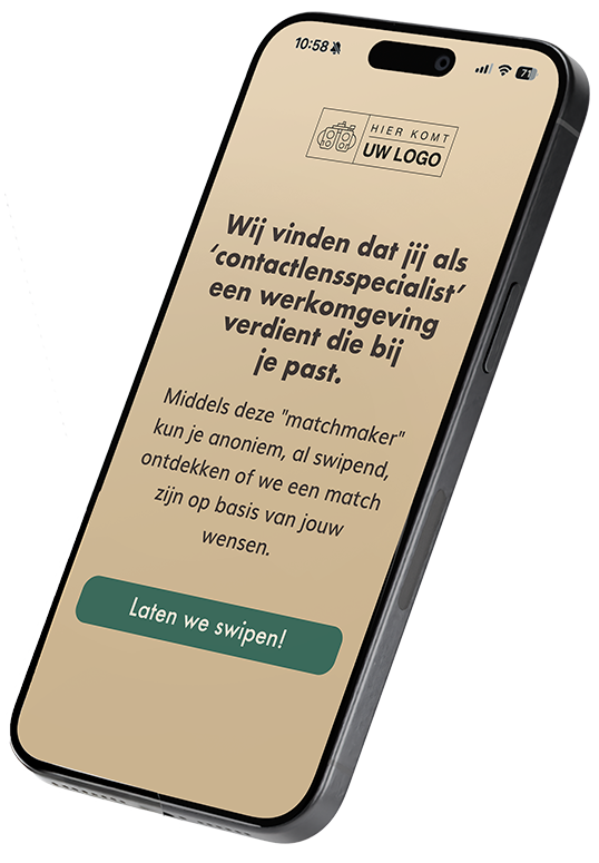 We denken graag met je mee over unieke, gepersonaliseerde manieren om EyeSwipe op een subtiele en stijlvolle manier onder de aandacht te brengen bij professionals in de optiekbranche. Met op maat gemaakte POS-materialen – zoals posters, stickers en spiegeluitingen – wek je nieuwsgierigheid en creëer je een uitnodigende omgeving voor iedereen die geïnteresseerd is in hun volgende carrièrestap.